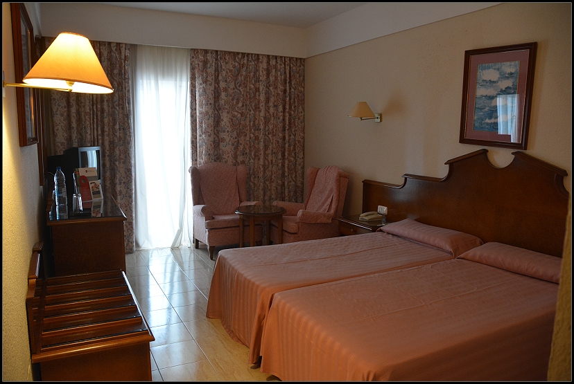 Unsere Unterkunft war halt ein 4-Sterne-All-inclusiv-Bunker. Das riesige Hotel war auf einer megagroßen Fläche um zwei Pools herum gebaut. Vor etlichen Jahren waren zwei Hotelkomplexe zu einem zusammengelegt worden. Die Zimmer waren groß und sauber, aber abgewohnt und sehr hellhörig. Es gab einen kostenlosen Safe und einen kleinen Kühlschrank. WLAN funktionierte nur in den öffentlichen Bereichen und leider nicht im Zimmer.