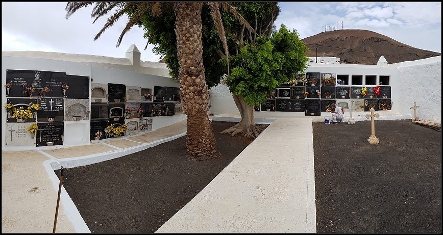 Unser Begleitfahrzeug trennte sich von uns und alleine machten wir uns auf den Weg zu den Papagayo-Stränden. Im Örtchen Femés legten wir aber erst einen kurzen, aufgrund des Wetters nicht lohnenden Aussichtsstopp ein, kauften in einer Käserei Ziegenkäse für daheim und schauten uns etwas auf dem kleinen Friedhof um.