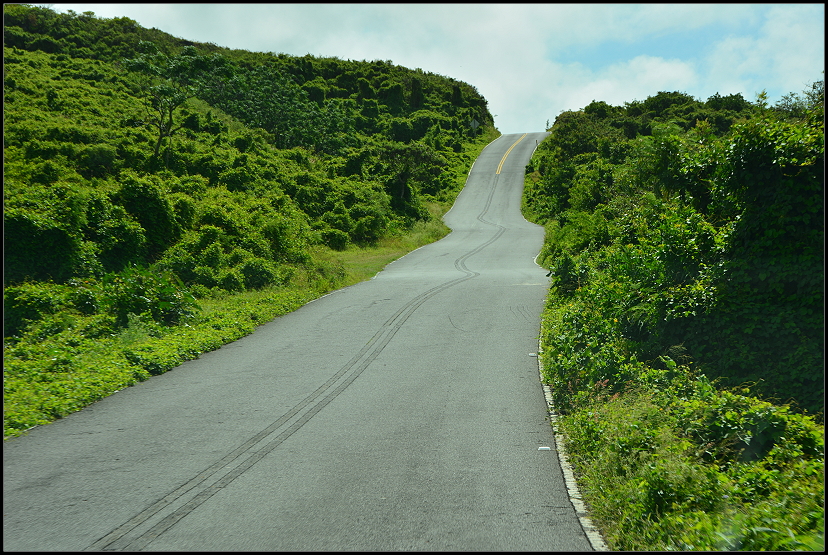 Die Landschaft änderte sich ständig. Erst fuhren wir durch dichten, sattgrünen Wald, dann verschwanden die Bäume und Agaven wuchsen am Straßenrand. Und dann irgendwann mischte sich Lava zwischen das Grün. Die Straße wurde damals so gebaut, wie es gerade ging. Wobei das Wort „gerade“ nicht so ganz in diesen Satz passt.