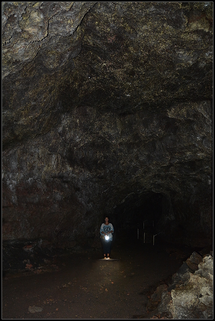 Die Hana Lava Tube neben der gesperrten Straße hatte aber geöffnet. Für 12,50 USD pP (11,20 €) bekam jeder von uns eine Taschenlampe und los ging es auf eigene Faust durch die stockdunkle Röhre. Über einige Stufen erreichten wir den Eingang.