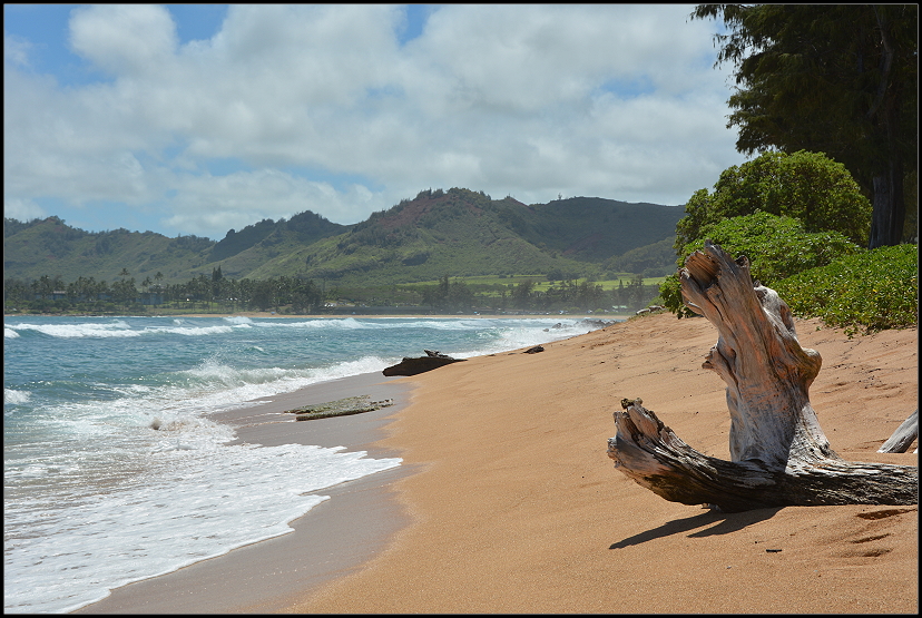 Vorbei an blühenden Plumeriabäumen spazierten wir zum Strand. Wow, toll! An den feinen Sandstrand klatschten die Wellen aus dem blauen Meer und ein leichter warmer Wind wehte. Einfach traumhaft!