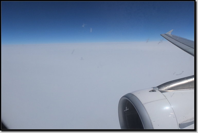 Dank der nun sauberen Scheibe, konnte ich den gesamten Flug über die dichte Wolkendecke draußen beobachten. Da hatte sich das Putzen doch mal gelohnt.