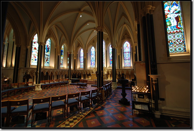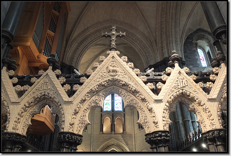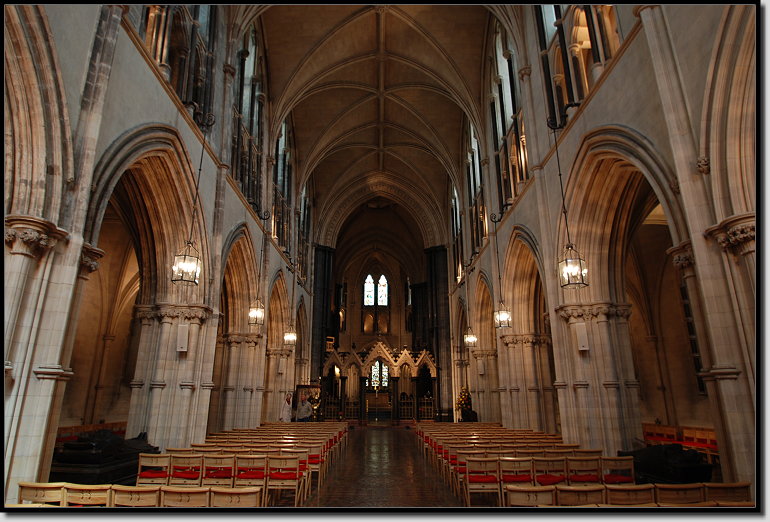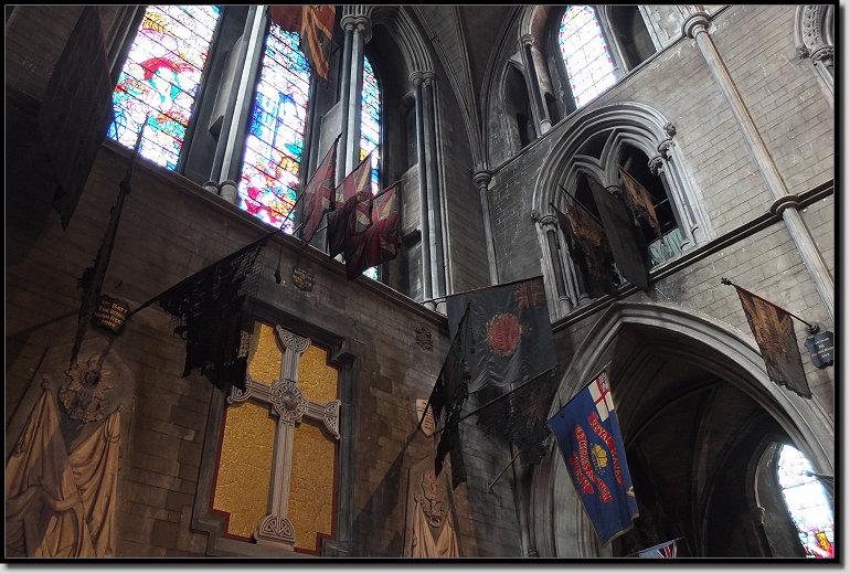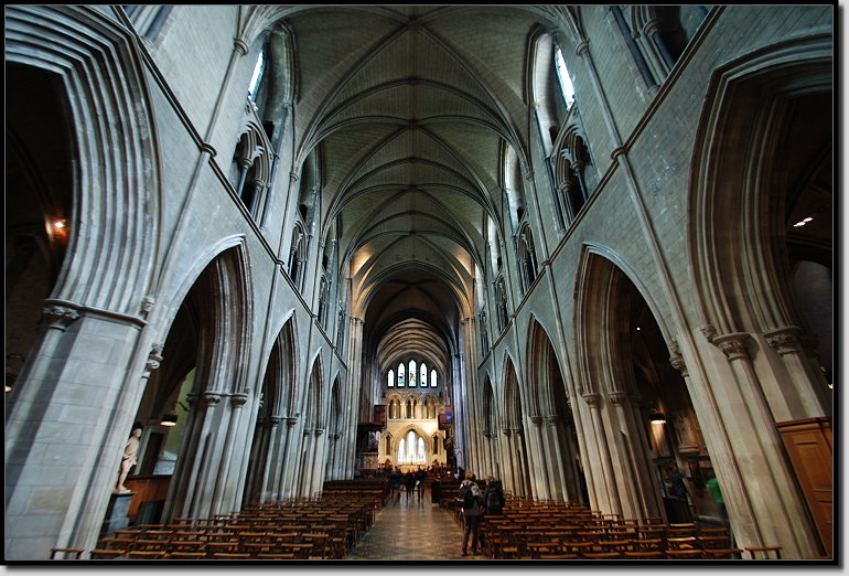 Über die Bride Street liefen wir zur St. Patrick´s Cathedral. Der heilige Patrick soll dort im Park um 450 in einem Brunnen bekehrte Gläubige getauft haben. Seit dem 5. Jahrhundert steht neben dieser Stelle eine Kirche. Für 5,50 Euro p.P. betraten wir das imposante Gotteshaus.