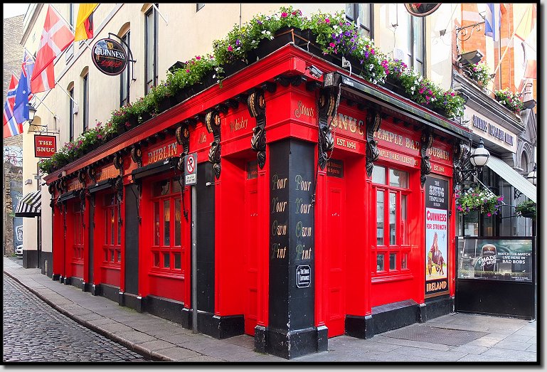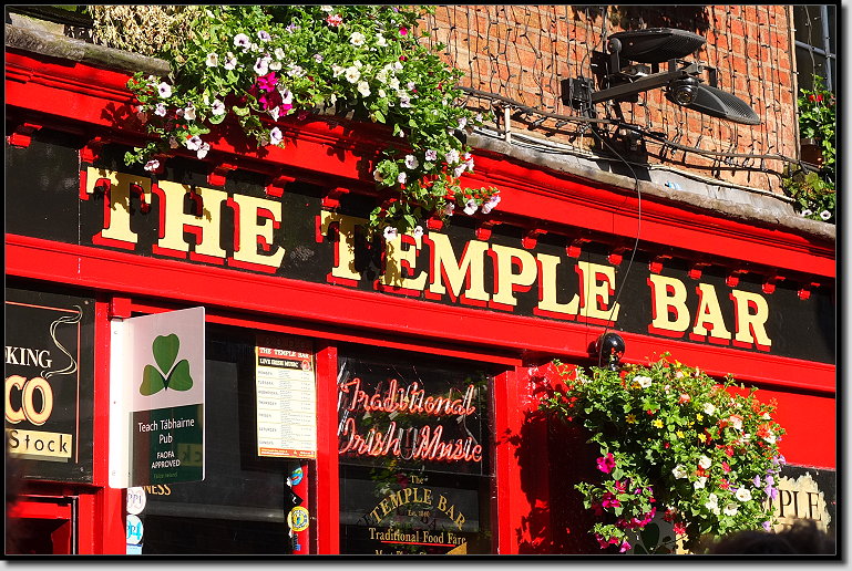 Anschließend steuerten wir das Hotel an, machten uns frisch und zogen uns um. Gegen 19:00 Uhr stiefelten wir erneut los und zwar Richtung Temple Bar. In dem Viertel reiht sich ein Pub neben dem anderen. Man weiß gar nicht, wo man reingehen soll! Zudem stehen auf der Straße Leute mit großen Schildern in der Hand, auf denen für den jeweiligen Pub (sogar mit Richtungspfeilen) geworben wird. Das hatten wir so auch noch nicht gesehen.