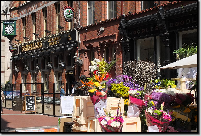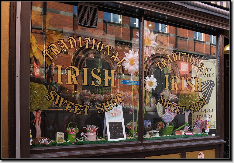 Im alten Bewley´s Oriental Café legten wir bei Kaffee und Cola eine Pause ein. Draußen auf dem schmalen Balkon beobachteten wir das bunte Treiben zu unseren Füßen. Straßenmusiker spielten und sangen, Straßenkünstler zeigten ihre Kunststücke und dazwischen wuselten die vielen Menschen umher.