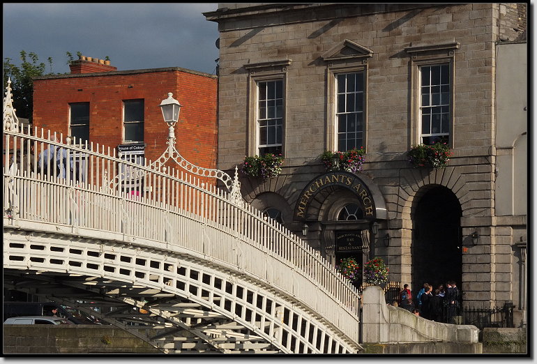 An der Liffey entlang gingen wir Richtung Temple Bar Viertel. Natürlich musste ich wieder die Ha´penny Bridge ablichten. War ja auch das erste Mal, dass ich sie sah…