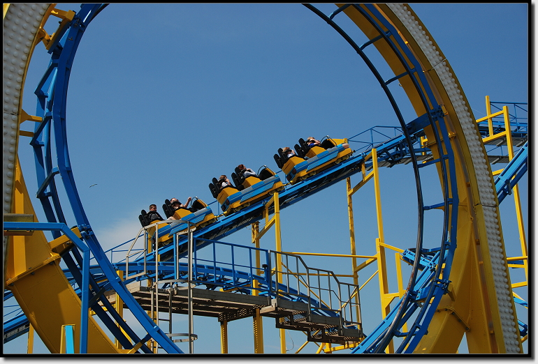 Ein paar 100 Meter weiter steht der Brighton Pier (offiziell Brighton Marina and Palace Pier). Er wurde im Jahr 1899 eröffnet und auf ihm ist das ganze Jahr ein Rummelplatz mit Wildwasserbahn, Spielhallen, Karussells, Autoscooter, Nippesbuden und sogar einer Achterbahn.