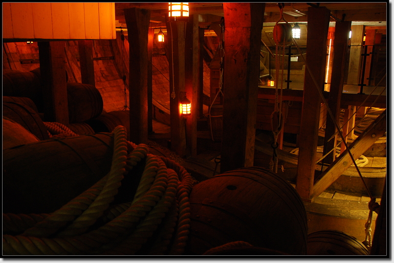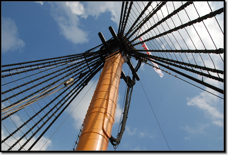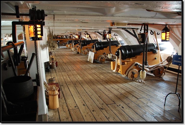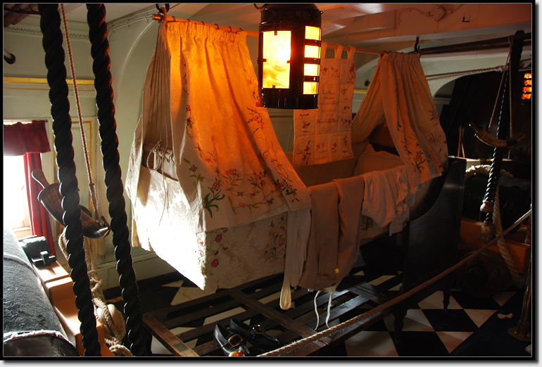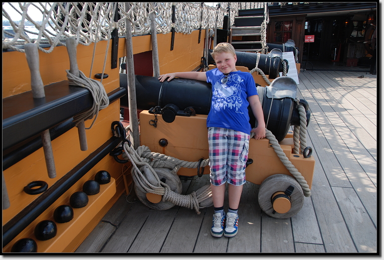 Das Schiff ist wirklich sehenswert. Im Innern mussten wir aufpassen, damit wir uns den Kopf nicht an der teilweise sehr niedrigen Decke stießen. Überall gab es etwas zu entdecken. Oben an Deck markiert eine Plakette auf dem Boden die Stelle, wo Lord Nelson tödlich angeschossen wurde. Unter Deck fanden wir auch die Stelle, wo er dann verstarb.