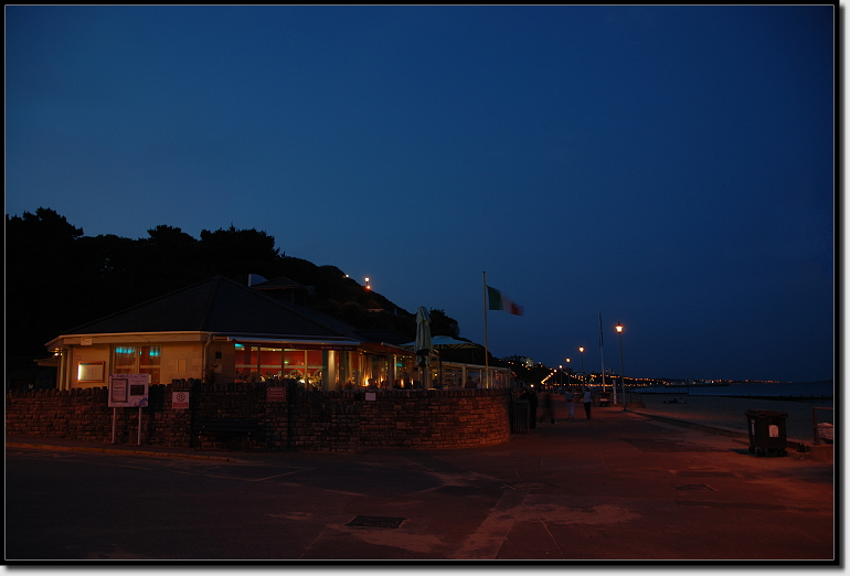 Essen wollten wir gerne etwas am Meer und nicht im Hotel. So fuhren wir mit dem Auto Richtung Wasser, parkten und liefen die Promenade entlang. Dort gab es aber nur einen Italiener direkt am Anfang, dann über mehrere 100 Meter nur Strandhäuschen und dann ein Grillrestaurant. Mmmh, Tom und ich hätten ja gerne einen schönen Pub gehabt, aber wir landeten dann beim Italiener. Dort drin war es sehr warm und laut, aber das Essen war gut.