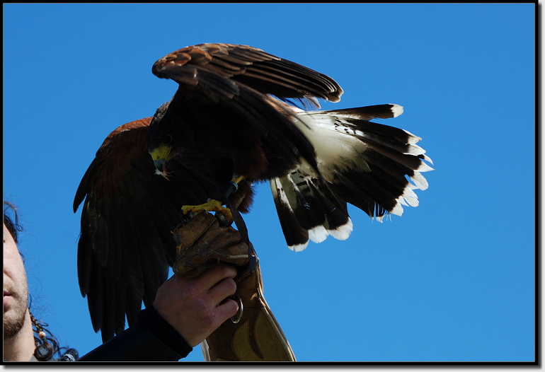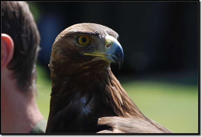 Kaum hatten wir das Castle betreten, begann dort eine Greifvögelshow. Och, wie nett. Wir hockten uns ins Gras, ließen uns die Sonne auf den Bauch scheinen, lauschten den Worten des Falkners und bestaunten die wunderschönen Tiere bei ihren Flügen.