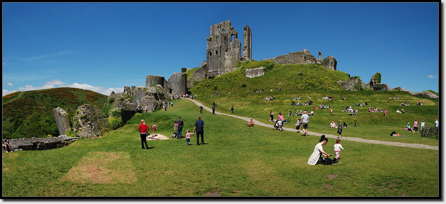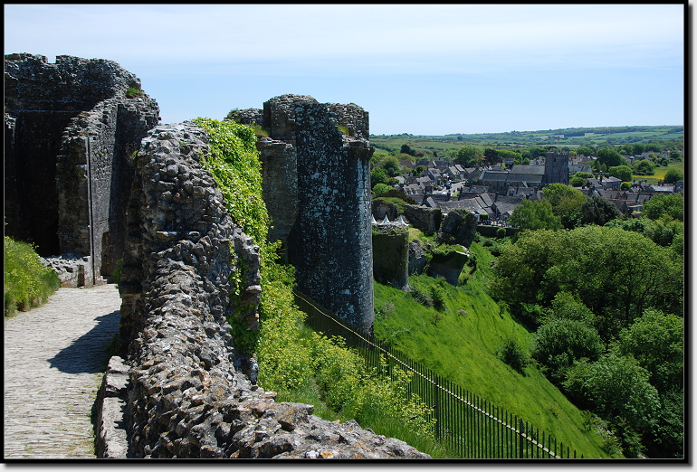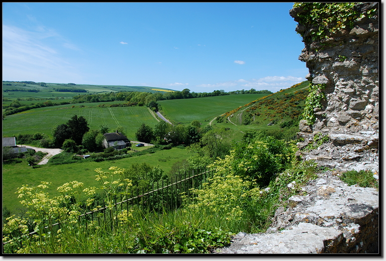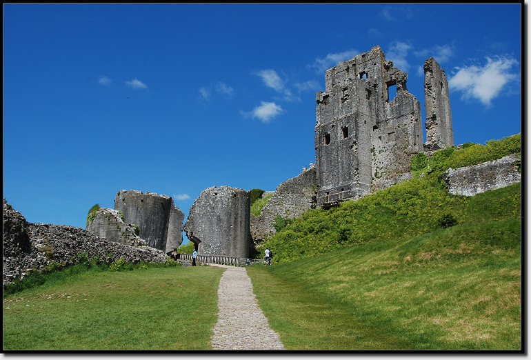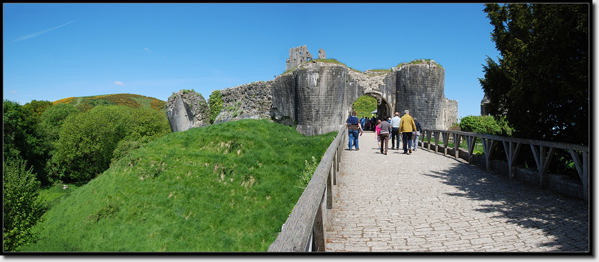 Das Castle wurde um 1090 erbaut und ist heute nur noch eine Ruine, die auf einem mit Gras bewachsenen hohen Hügel liegt. Ein beschilderter Fußweg führte uns einmal um den Hügel herum und dann hinauf zum gleichnamigen niedlichen Örtchen Corfe.