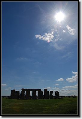 Unser letzter Stopp des Tages war Stonehenge. 2006 waren Tom und ich, auf dem Weg nach Irland, schon einmal dort gewesen. Der Parkplatz war gut gefüllt, Tom und ich hatten aber Glück und bekamen sofort in der ersten Reihe einen Platz. Unser Begleitfahrzeug kam auf einer großen Wiese nebenan zum Stehen. An der Kasse mussten wir kurz anstehen und bekamen nach dem Bezahlen unsere Audioguides auf Deutsch umgehangen. Mit den Dingern am Ohr und der Stimme lauschend gingen wir durch eine kleine Unterführung und kamen so direkt zu den Steinen.