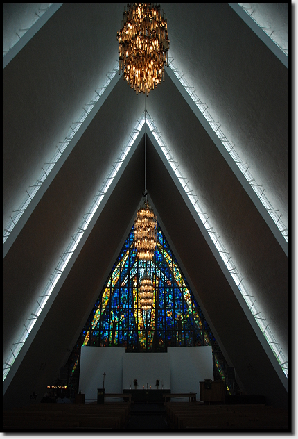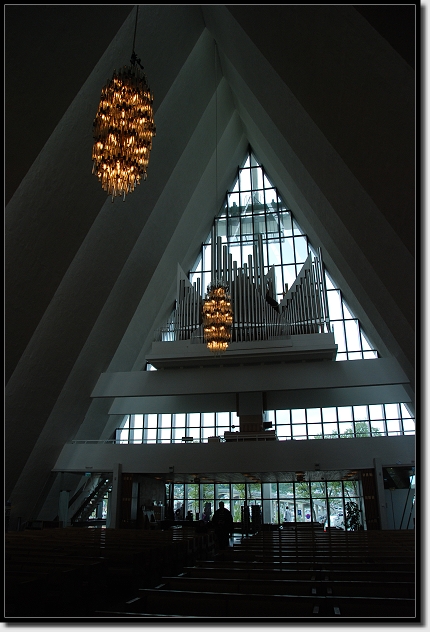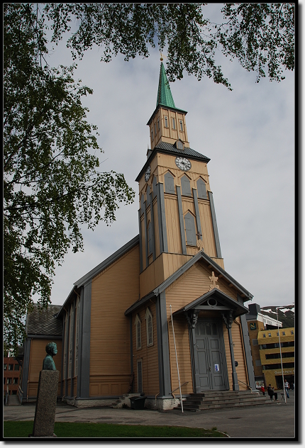 Die Domkirche, ein paar Ecken weiter, gehört zu den nördlichsten Kathedralen der Welt und ist auch eine der größten norwegischen Holzkirchen. (Leider sind die Bilder etwas verzerrt.)