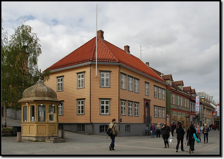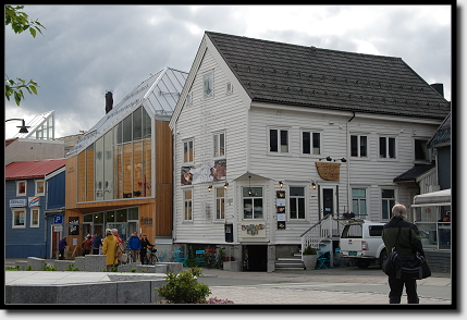Über die große Brücke fuhren wir ins Zentrum und suchten uns einen Parkplatz in der Nähe des Hurtigrutenkais. Dann schlenderten wir durch die lebhafte Fußgängerzone. Tromsø ist schon eine Großstadt in der norwegischen Wildnis, aber wir fanden es hier ganz nett. Viele alte Häuser waren zu sehen, in denen schöne Geschäfte untergebracht sind.
