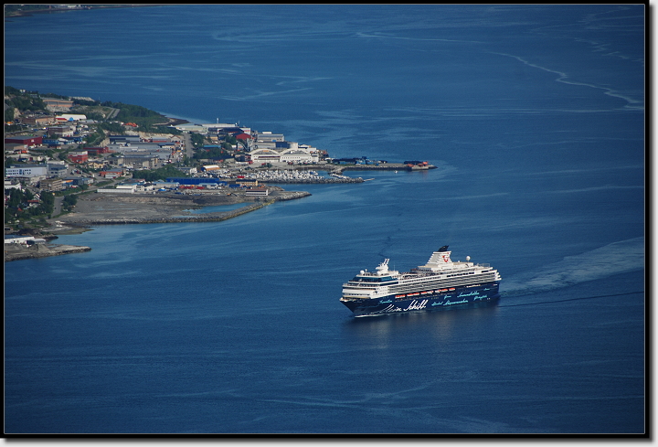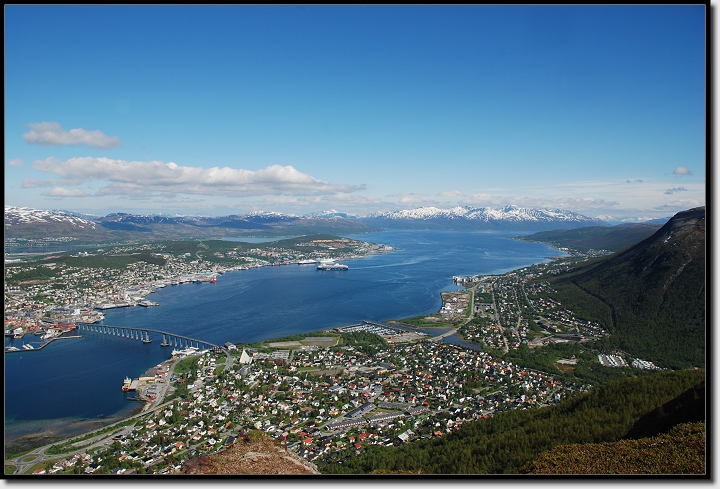 Als der Wecker um 7:00 Uhr schellte, wollten wir gar nicht aufstehen. Aber heute war wieder Fahrtag, also los! Im Duschraum kam ich mit einer netten Dame ins Gespräch, wir klönten eine ganze Weile rum. „Vielleicht sieht man sich ja auf den Lofoten wieder?“ sagte sie. „Bestimmt!“ war meine Antwort, beim Gedanken an die vielen Leute, die wir schon mehrmals getroffen hatten. Um 8:50 Uhr verließen wir den Platz und fuhren zurück nach Tromsø. An einem Supermarkt holten wir mal wieder ausgegangene Lebensmittel und Tom kaufte auch noch drei Dosen norwegisches Bier für zuhause.