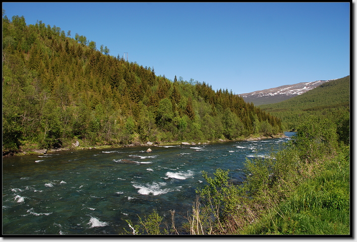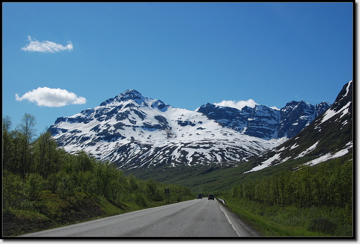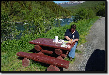 Bei Nordkjosbotn bogen wir rechts auf die E6 ab und erblickten immer mehr Menschen in T-Shirts und kurzen Hosen. Bei mittlerweile 18°C war dort oben für alle der Hochsommer angekommen.