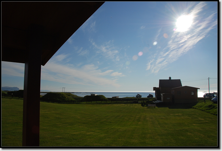 Von innen ok, wie die meisten Anderen auch. Toiletten gab es allerdings nur zwei und Duschen sogar nur eine und dafür musste man auch noch Coins kaufen (20 Kronen; 2,66 €). Und der Inhaber hatte einen leichten Mülltrennungsspleen. In der Entsorgungsecke standen 7 verschiedene Tonnen. Für Papier, Glas, Dosen aus Norwegen, Dosen aus dem Ausland, Plastik usw. Internet war kostenlos, aber für warmes Wasser beim Spülen mussten wir 1,33 € in einen Automaten werfen. Nachdem wir uns häuslich eingerichtet hatten, gab es Erbsensuppe aus der Dose und Tom machte mir eine heiße Zitrone. Während mein Mann draußen die Sonne genoss, schaute ich noch kurz ins Internet und legte mich schon um 20:30 Uhr aufs Ohr. Ich bekam Fieber und fror wie ein Schneider… Scheiß Erkältung!!! Tom konnte nicht schlafen, fotografierte die Mitternachtssonne und zwang sich schließlich gegen 2:00 Uhr sein Buch an die Seite zu legen und die Augen zu schließen.