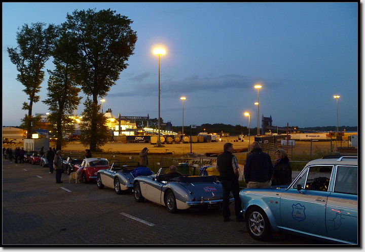 Neben uns wartete eine ganze Reihe mit schönen alten Austin Healeys. Sie kamen aus Holland und unternahmen gemeinsam eine organisierte Nordkaptour.