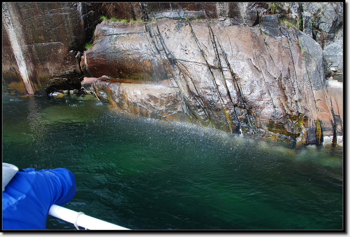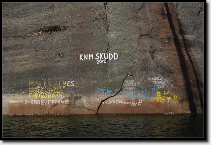 Unser Boot fuhr ganz dicht an die steil empor ragenden Felsen heran. Seevögel hockten in Nischen und schauten uns ängstlich an. Was für eine grandiose Natur. Toll!