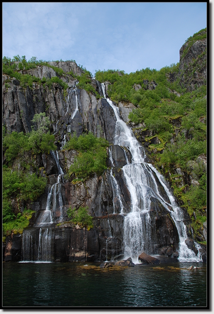 Wir schipperten durch die wunderschöne Inselwelt und alle paar Meter bot sich ein neuer toller Anblick. Die kleinen niedlichen Sommerhütten am Ufer, die teilweise dicht bewaldeten Berghänge mit immer wieder auftauchenden Wasserfällen, ein Traum!