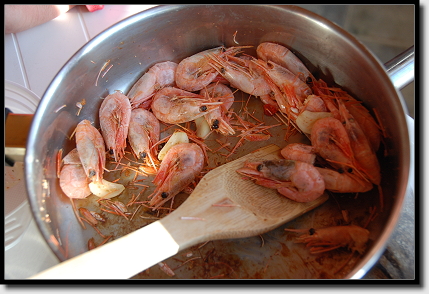 Zurück am Campingplatz machten wir in der Gemeinschaftsküche lecker Garnelen mit Knoblauch und Knoblauchsauce (wir müssen uns ja nicht riechen;-)) und ließen sie uns schmecken. Als noch acht andere Camper die Küche stürmten, flüchteten wir nach draußen.