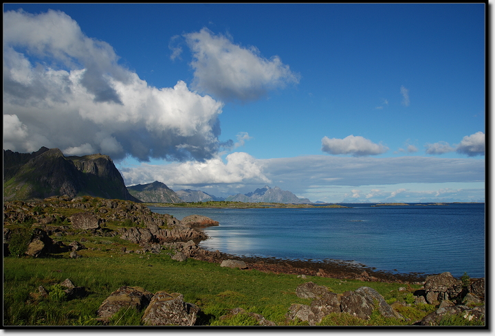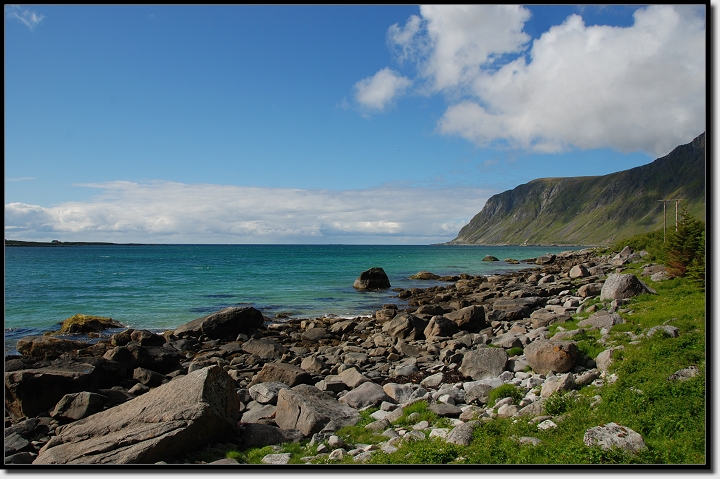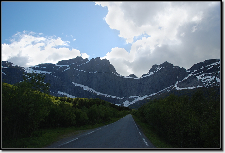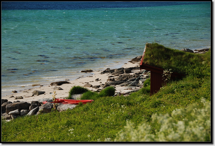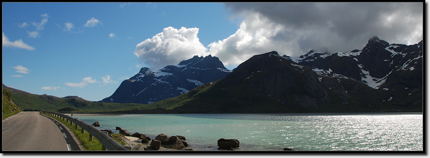 Erst ging es wieder ein Stück Richtung Leknes, dann rechts ab nach Borg. Kurz vor dem Wikingermuseum bogen wir links nach Unstad ab. Erst fuhren wir die ganz normale Straße, durch den neuen Tunnel, bis zum Ende. Schon schön, aber nicht so wirklich spektakulär.