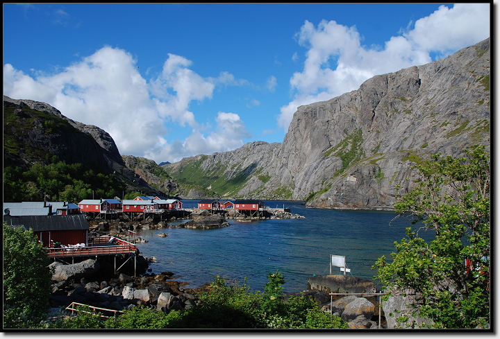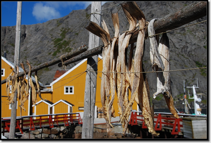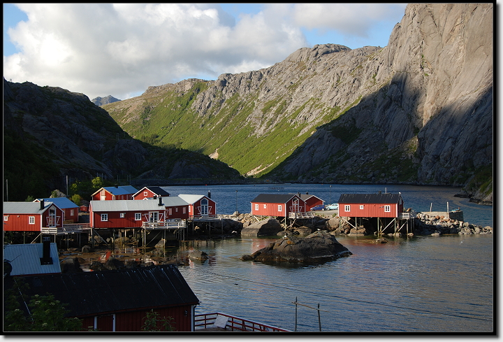 Gestärkt wollten wir uns noch Nusfjord anschauen. Das kleine Fischerdorf ist bei Touristen sehr beliebt und liegt im Süden der Insel. Um drei kleine Buchten verteilen sich mehrere rote Rorbuer, die man mieten kann. In diesen einfachen Holzhütten wohnten früher Fischer. Als es dann immer größere Boote gab, auf denen man auch schlafen konnte, verfielen die Rorbuer. Erst in den 1960er Jahren fing man an sie zu restaurieren, komfortabler herzurichten und an Touristen zu vermieten. Die Fahrt dorthin dauert mal wieder etwas länger, weil wir ständig anhalten mussten…