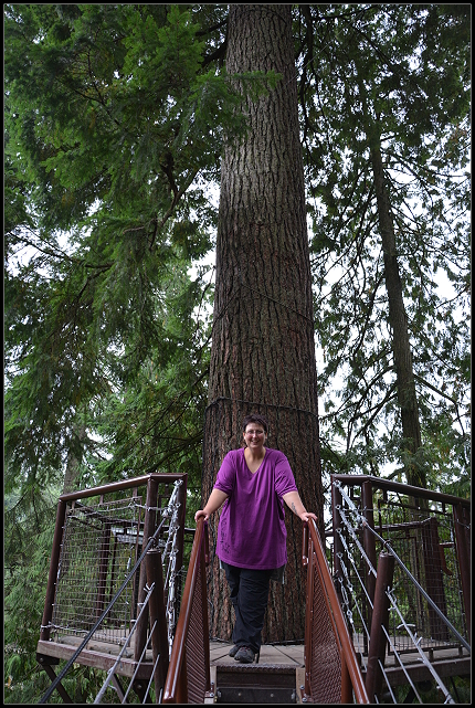 An einem Baumhaus stiegen wir einige Stufen hoch zu den sieben Hängebrücken, die zwischen den alten Douglasien gespannt sind. Sie hängen teilweise bis zu 30 Meter über dem Waldboden und es machte uns viel Spaß mal den Blickwinkel eines Vogels zu haben.