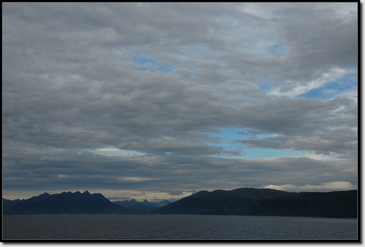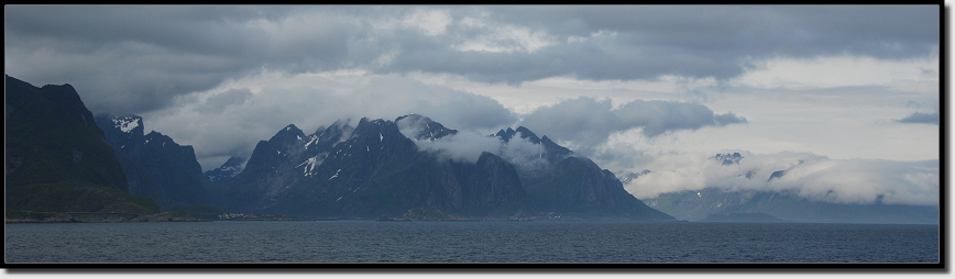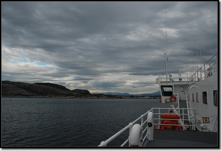 Bis zur Abfahrt schwatzten wir und aßen leckeren Kuchen. Als die Fähre in den kleinen Hafen einlief, standen wir schon am Auto. An Bord verzurrte Gerd sein Rad und wir drei suchten uns in der Lounge eine gemütliche Ecke. Nachdem wir abgelegt hatten, ging ich kurz an Deck und machte noch zwei letzte Bilder von den Lofoten. Tschüss, es war wunderschön!!