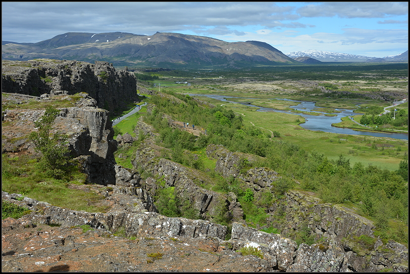 Uns beeindruckte zuallererst einmal der gut gefüllte Parkplatz. Dann richtete sich unser Blick auf das Tal, welches die auseinanderdriftenden Kontinentalplatten geschaffen hatten. Wow, da wurde über viele viele Jahre mal ganze Arbeit geleistet!