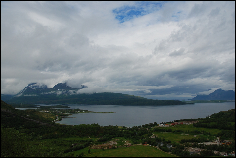 In Kilboghamn angekommen fuhren wir die letzten Kilometer bis Mo I Rana zügig durch. Dort wollten wir eigentlich auf einen Campingplatz, den ich im ADAC-Campingführer entdeckt hatte. Als wir den Platz dann gefunden hatten, war uns sofort klar, dass wir dort nicht bleiben werden. Im Hintergrund eine große Fabrik, es gab keine Hütten, nur ein motelähnliches Gebäude und der Gesamteindruck war eher schmuddelig. Da tuckerten wir lieber noch ein paar Kilometer weiter. In Dalsgrenda fanden wir dann einen kleinen hübschen Platz direkt am Fjord. Ja, so wollten wir schlafen.
