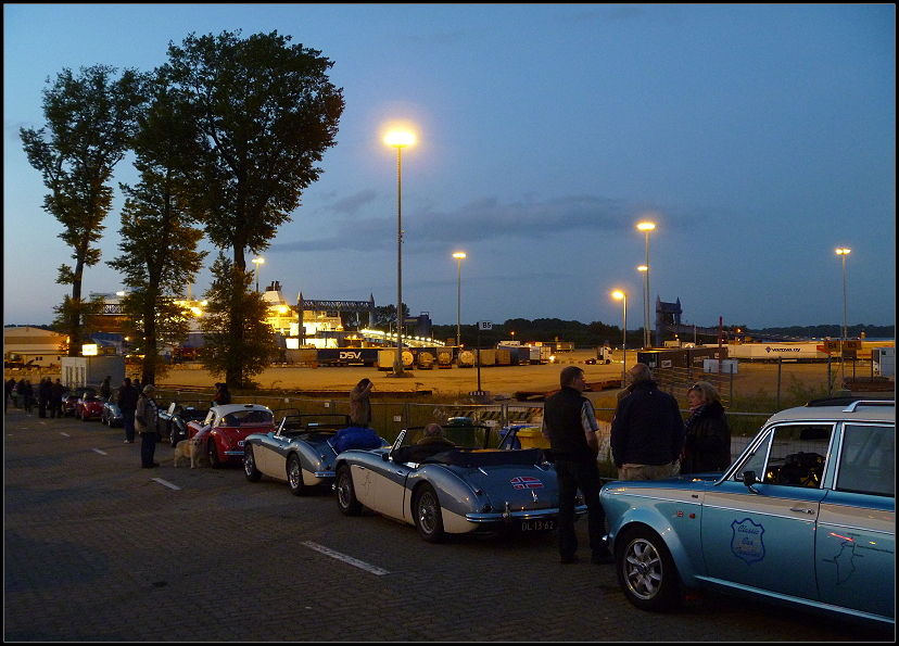 Neben uns wartete eine ganze Reihe mit schönen alten Austin Healeys. Sie kamen aus Holland und unternahmen gemeinsam eine organisierte Nordkaptour.
