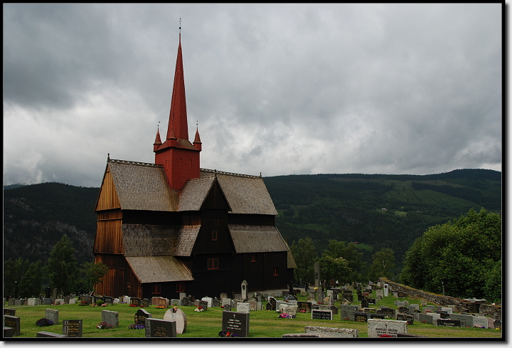 Unser erster Stopp des Tages war in Ringebu. Wir wollten die dortige Stabkirche besichtigen. Kaum waren wir aus unserem Wagen ausgestiegen, kam ein Bus voller Touristen den Berg hochgefahren. Na super!! Ich machte schnell ein Bild von der Kirche, bevor sich 50 fremde Menschen davor tummelten und unsere Fotos „versauten“.