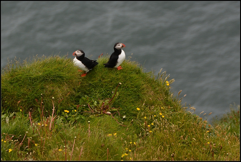 Als es nach wenigen Minuten wieder trocken war, konnten wir in Ruhe die atemberaubende Aussicht auf den schwarzen kilometerlangen Strand genießen. Dazu gab es auch noch ein paar Puffins zu bestaunen. Wow, dort war es richtig cool!!!