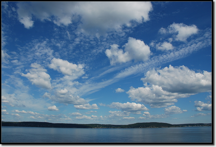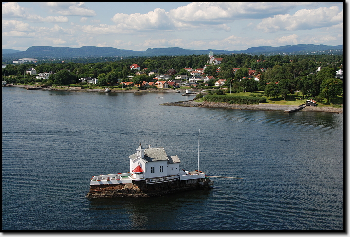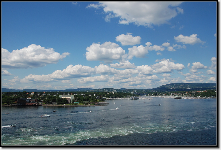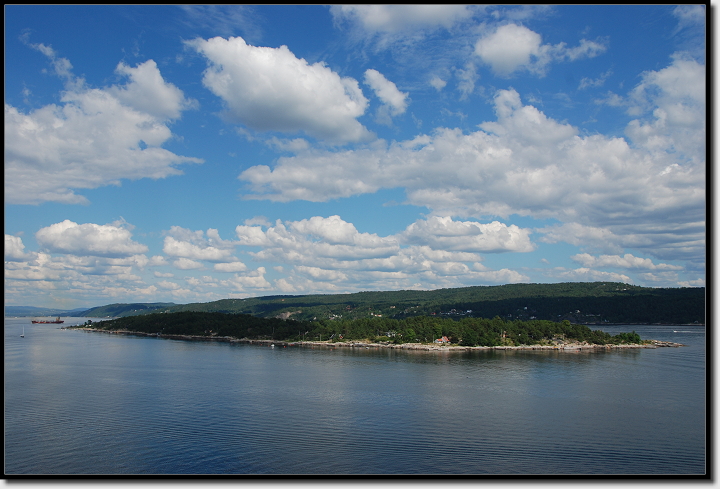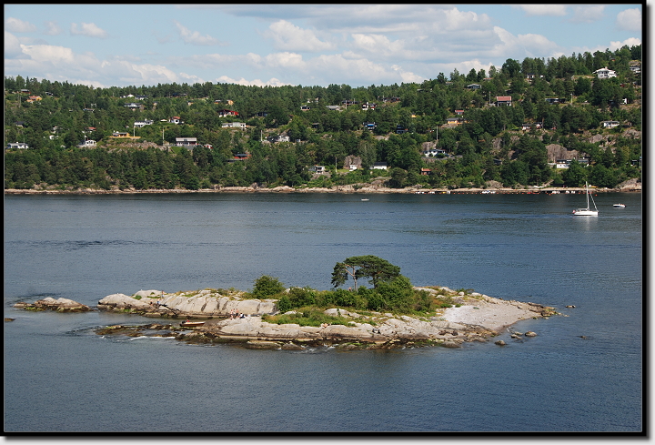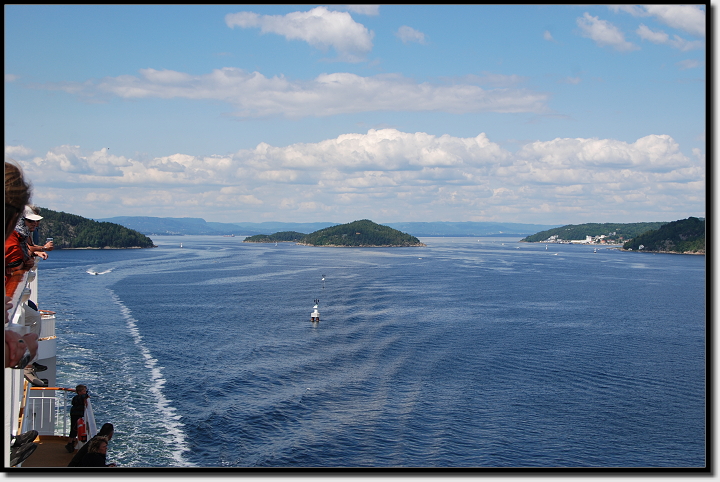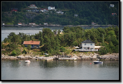 Pünktlich zum Auslaufen waren wir wieder frisch und gingen an Deck. Die Fahrt durch den Oslofjord ist total schön, weil man so lange am Ufer vorbeifährt. Das Deck war natürlich rappelvoll, aber wir fanden auch noch ein nettes Plätzchen und genossen die Fahrt. Beim Anblick der vielen hübschen Sommerhäuschen träumten wir davon auch so eins zu besitzen. Ach, wäre das schön!