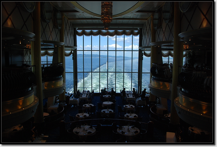 Die Fähre schien ausgebucht zu sein, denn das Autodeck wurde so vollgepackt, dass man kaum aus seinem Auto raus kam. Das war echt blöd. Die Leute neben, hinter und vor uns fluchten ebenfalls über die Enge und hatten Angst vor Dellen in ihren PKW´s. Vorsichtig gingen wir mit unseren Taschen zum Ausgang und fuhren auf Deck 10.