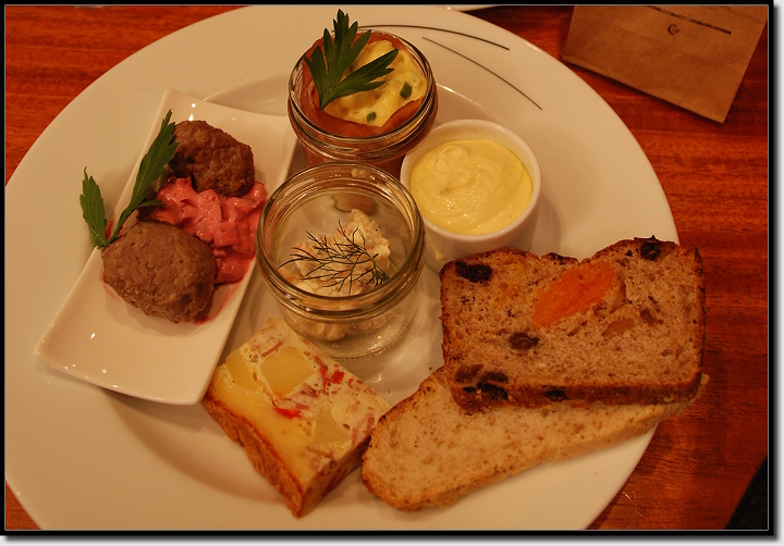 Eigentlich hatten wir ja Essen mit auf die Fähre genommen, aber die skandinavischen Tapas (natürlich hauptsächlich mit Fisch) lachten uns so an, dass wir welche bestellten. Dazu gab es Brot und Aioli. Alles schmeckte ganz hervorragend.