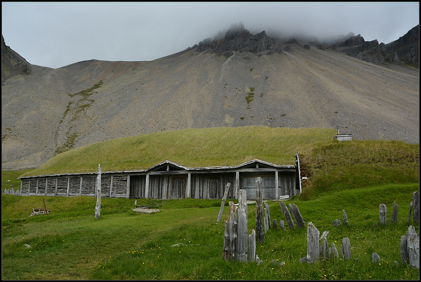 Nach dem Frühstück sprachen uns drei Österreicher an. Mit ihrem Auto würde etwas nicht stimmen, ob wir das Klackern auch hören würden?! Ja, aber viel machen konnten wir auch nicht. Wo wir aber schon mal im Gespräch waren, liefen wir auch gemeinsam zu dem Wikingerdorf am Berghang rüber. Dieses wurde 2009 für irgendeinen Film aufgebaut. Seitdem verfällt dort alles und ist jetzt nicht wirklich sehenswert.