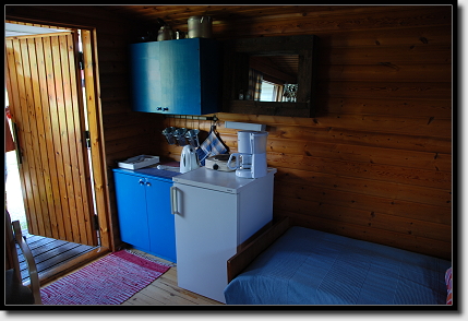 Nach der anstrengenden Fahrt genoss Tom noch einen Whisky und wir gammelten vor und später in der Hütte rum. Dann mussten wir allerdings doch noch zwei Mücken erledigen, die in unserer Unterkunft auf ihr Essen, UNS, warteten! Es war noch taghell draußen und die Schwalben zogen ihre Kreise, als wir gegen 22:30 Uhr einschliefen.