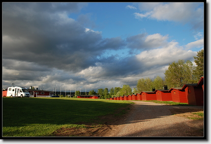 Während des Essens plauderten wir ein wenig mit einem Motorradfahrer aus Remscheid. Er hatte die Tour, die wir noch vor uns hatten, bereits hinter sich und schwärmte von Norwegen. Nach dem Essen schlenderten wir ein bisschen am Fluss entlang und genossen die Sonne, die ab dem heutigen Tag für die nächsten Wochen nicht mehr untergehen wird. Mücken waren zwar ein paar unterwegs, aber da es recht windig war, störten sie nicht wirklich.