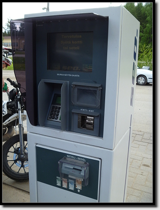Unser Auto schrie nach 538 km nach Sprit, mit einem Verbrauch von nur 8 Litern waren wir echt sparsam unterwegs. An der Tankstelle guckten wir erst etwas blöd aus der Wäsche. Es gab nur einen „Automaatti“. War aber zum Glück gar kein Problem, Kreditkarte rein, Betrag und Zapfsäule auswählen und tanken. Fertig!