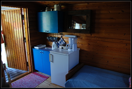 Nach der anstrengenden Fahrt genoss Tom noch einen Whisky und wir gammelten vor und später in der Hütte rum. Dann mussten wir allerdings doch noch zwei Mücken erledigen, die in unserer Unterkunft auf ihr Essen, UNS, warteten! Es war noch taghell draußen und die Schwalben zogen ihre Kreise, als wir gegen 22:30 Uhr einschliefen.