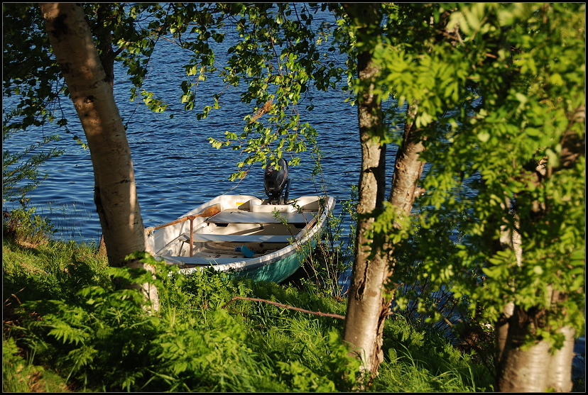 Während des Essens plauderten wir ein wenig mit einem Motorradfahrer aus Remscheid. Er hatte die Tour, die wir noch vor uns hatten, bereits hinter sich und schwärmte von Norwegen. Nach dem Essen schlenderten wir ein bisschen am Fluss entlang und genossen die Sonne, die ab dem heutigen Tag für die nächsten Wochen nicht mehr untergehen wird. Mücken waren zwar ein paar unterwegs, aber da es recht windig war, störten sie nicht wirklich.