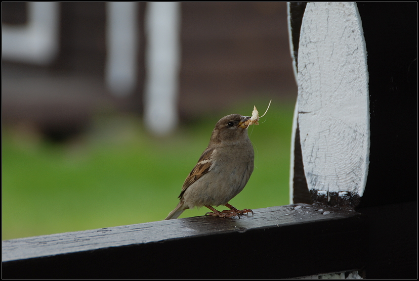 Während wir in unserer Hütte gemütlich frühstückten, baumelten unsere feuchten Handtücher an unserer Wäscheleine im Wind. So kam das sehr nützliche Teil auch endlich mal zum Einsatz. Beim Zusammenpacken merkten wir, dass fast direkt neben dem Hütteneingang Spatzen in einer Dachspalte brüteten.