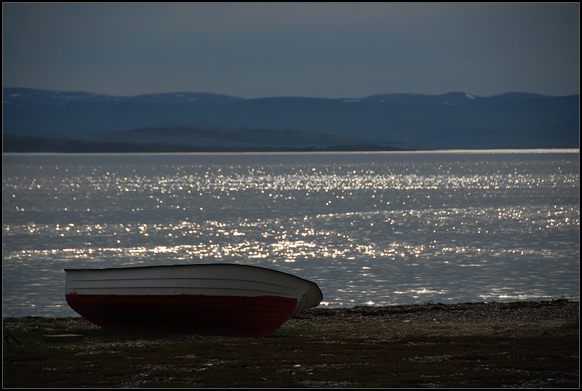 In Lakselv machten wir den Tank noch einmal voll (14,75 Kronen; 1,96 €), bevor wir den Campingplatz ansteuerten. Um 19:00 Uhr betraten wir die Rezeption und…….. buchten einen Platz für unser Zelt!!!! Es war trocken und sah auch nicht nach Regen aus. So suchten wir uns einen netten Platz und bauten das Ding auf. Begleitet wurden wir von ca. 18543 Mücken!!! Boah, wie ich dieses Viehzeug hasse!!!
