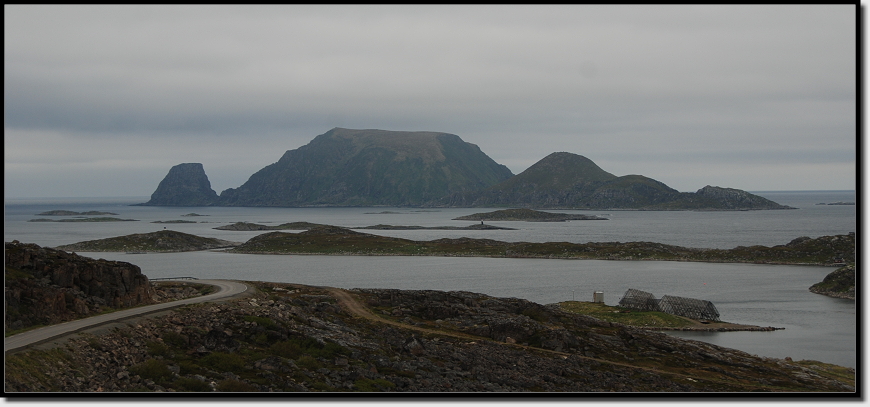 Nach dem erfolgreichen Einkauf fuhren wir die Strecke zum Dörfchen Gjesvær raus. Laut meinem Reiseführer soll sie schöner sein als die Straße zum Nordkap. Das war aber erst am Ende der Fall. Vorher sah alles aus wie am Kap, erst dann wurde es bergiger und die Aussicht auf den Ort war echt nett.