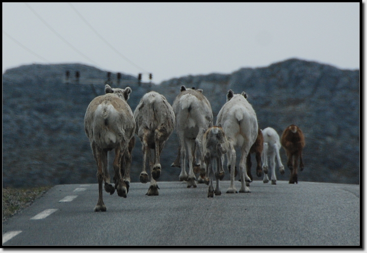 Auf dem Rückweg sahen wir mal wieder Rentiere. Die laufen hier rum, wie in Schottland die Schafe.