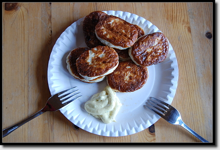 So langsam bekamen wir beide Hunger und steuerten unsere Hütte an. Im Topf waren noch Reste von gestern und wir hatten ja auch noch die Fiskekaker. Die aßen wir mit Remoulade und fanden sie recht lecker. Schmeckten nicht stark nach Fisch, nur ein wenig am Ende.