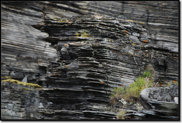 Durch die karge Stein-Moos-Landschaft rollten wir gen Süden. Auf der Hinfahrt war uns schon das Sedimentgestein neben der Straße aufgefallen. Das sah wirklich bizarr aus.