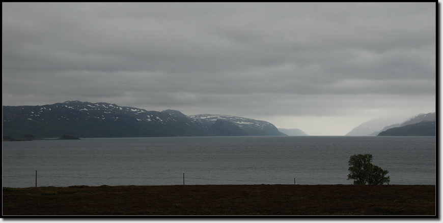 Der Wind blies so stark, dass die Regentropfen selbst bei Tempo 80 seitlich über die Windschutzscheibe liefen. Unglaublich! Unglaublich war auch der Fahrradfahrer der uns kurz hinter dem Nordkaptunnel entgegen kam. Trug der bei 7°C, Regen und gefühlten -15°C kaltem Nordwind doch tatsächlich eine kurze Hose!! Beim bloßen Gedanken daran, ist mir heute noch kalt.
